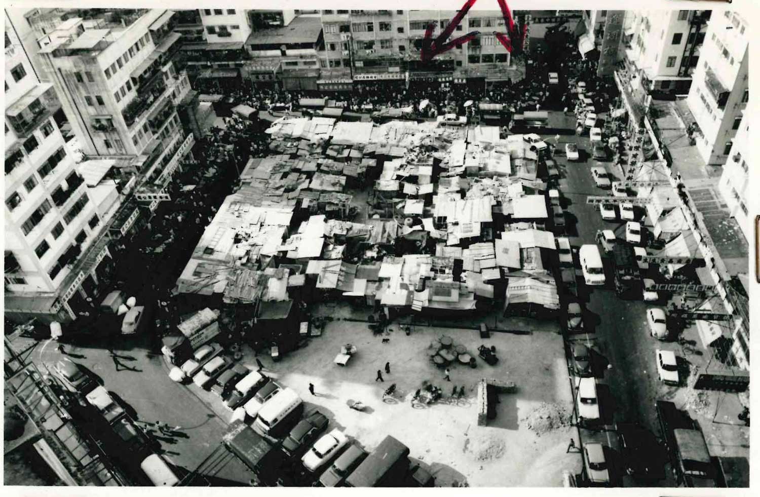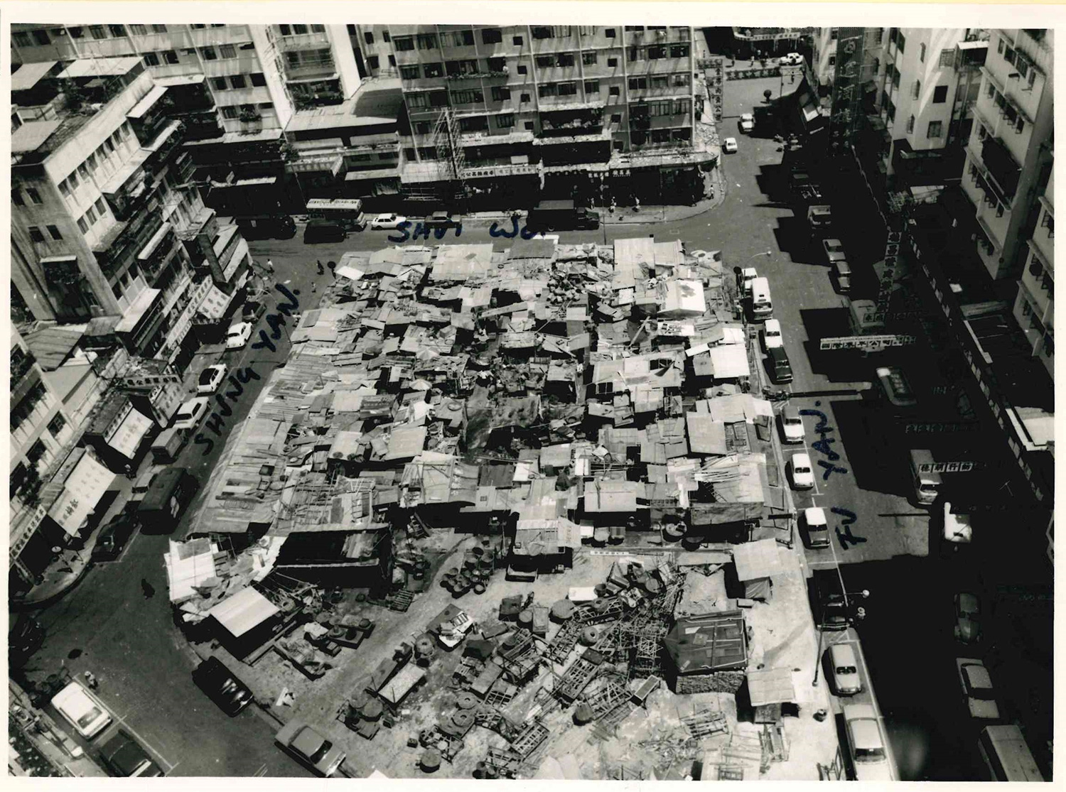 - 從高空俯瞰小販掃蕩行動後的瑞和街小販市場,1971年。(HKRS978-2-3)