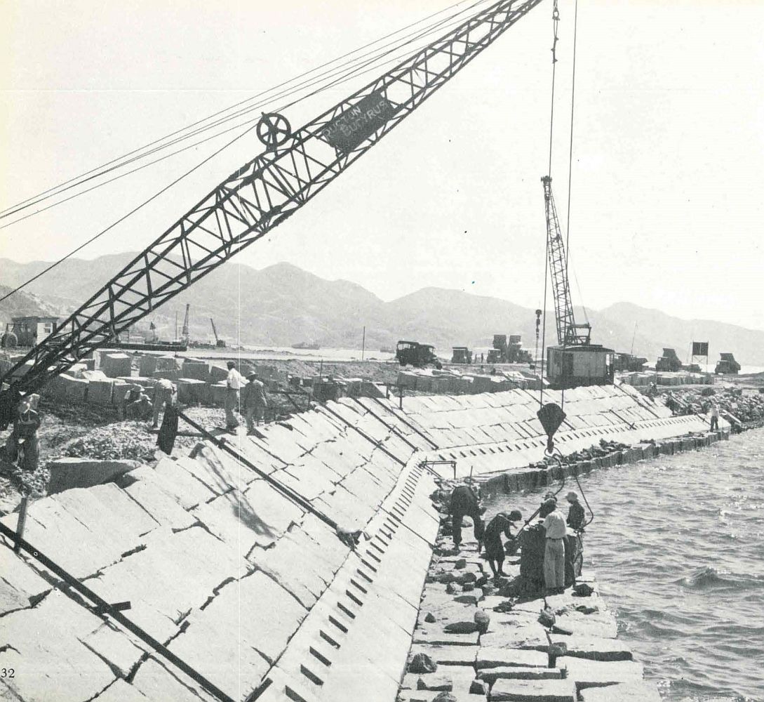興建中的啟德機場新跑道,1950年代。