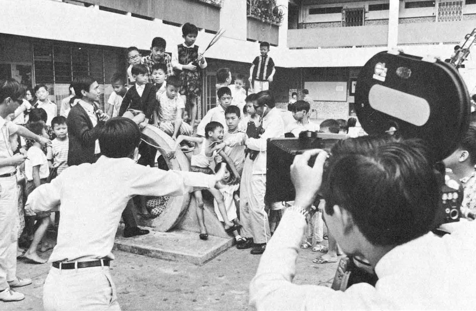 在牛頭角邨進行教育電視實地拍攝,1970年代。