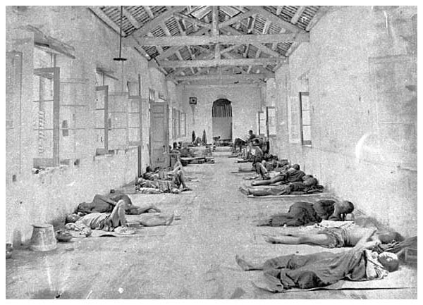 染有鼠疫的病人住在坚尼地城玻璃厂中的临时医院,1894年。